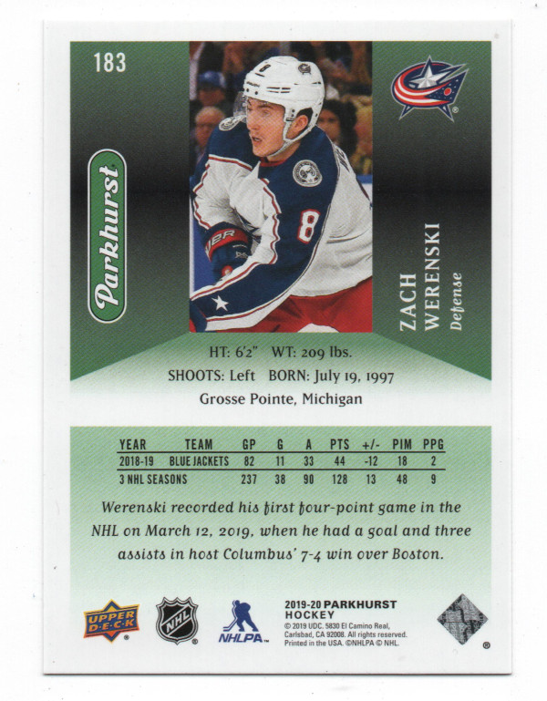 2019-20 Upper Deck Parkhurst ePack Gold Parallel #183 Zach Werenski