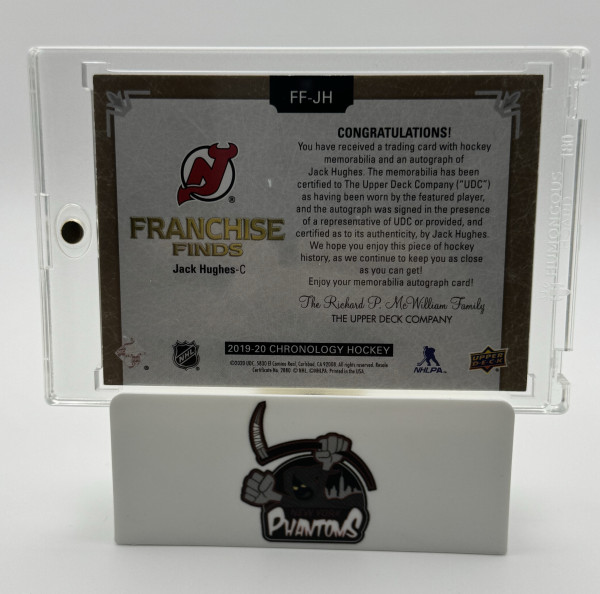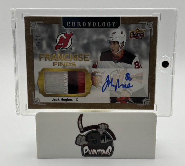 2019 UD Chronology Jack Hughes Franchise Finds Rookie Patch Auto /25