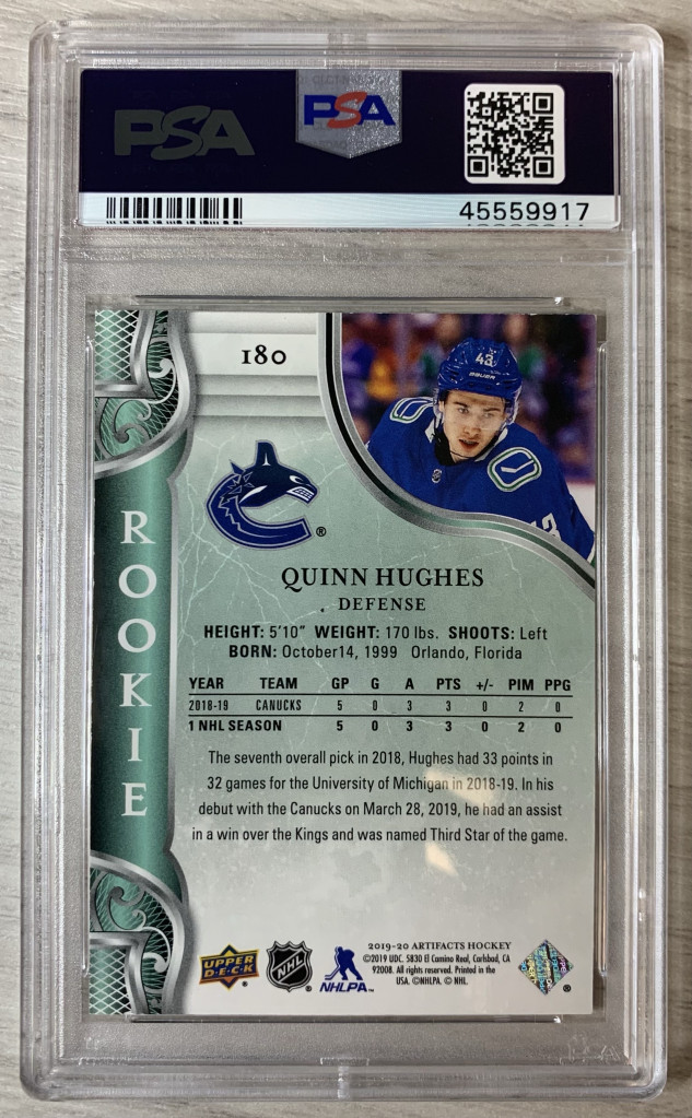 2019 Upper Deck Artifacts #180 Quinn Hughes - Emerald