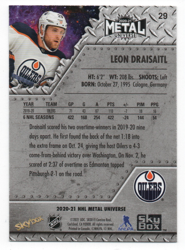 2020-21 Skybox Metal Universe ePack Spectrum Parallel #29 Leon Draisaitl
