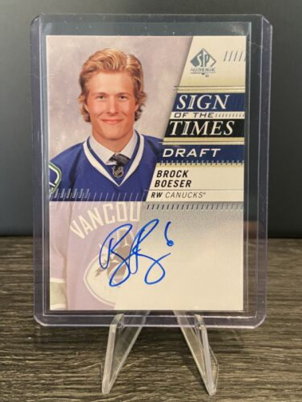 2020-21 SP Authentic Sign of the Times Draft Auto Brock Boeser Vancouver Canucks. Listed with Mascot.