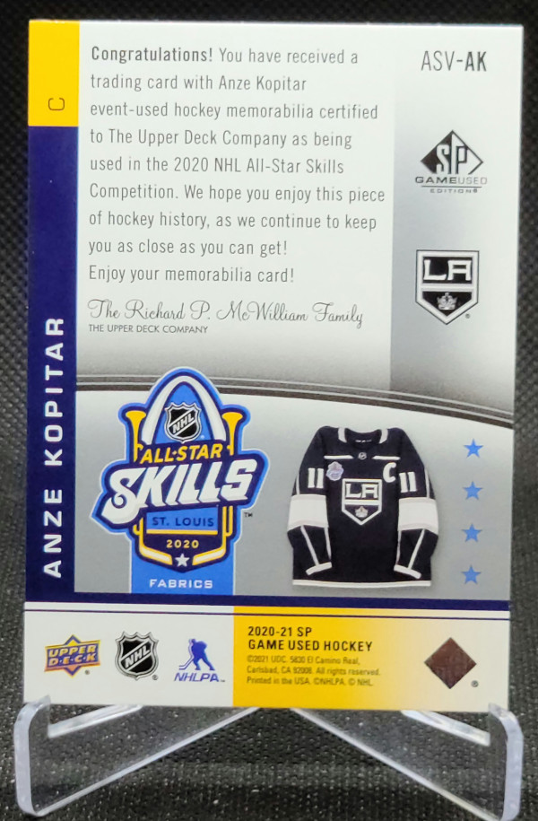 2020-21 SP Game Used '20 NHL All Star Skills Fabrics #ASVAK Anze Kopitar