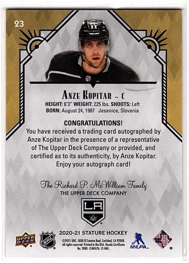 2020-21 Stature Auto Anze Kopitar /35
