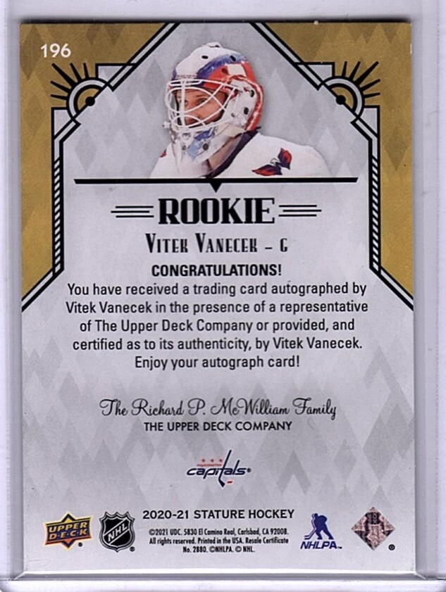 2020-21 Stature Green Rookie Auto Vitek Vanecek /85