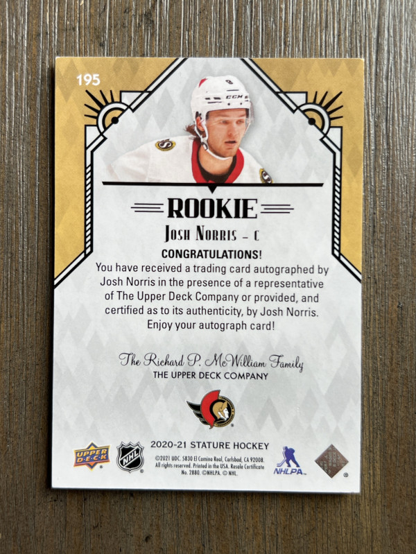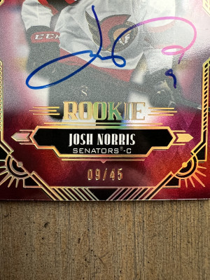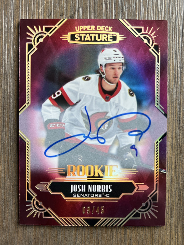 2020-21 Stature Josh Norris Red Rookie Auto JERSEY NUMBER 09/45 #139