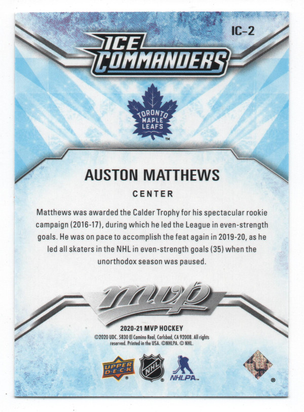 2020-21 Upper Deck MVP ePack Ice Commanders #IC-2 Auston Matthews