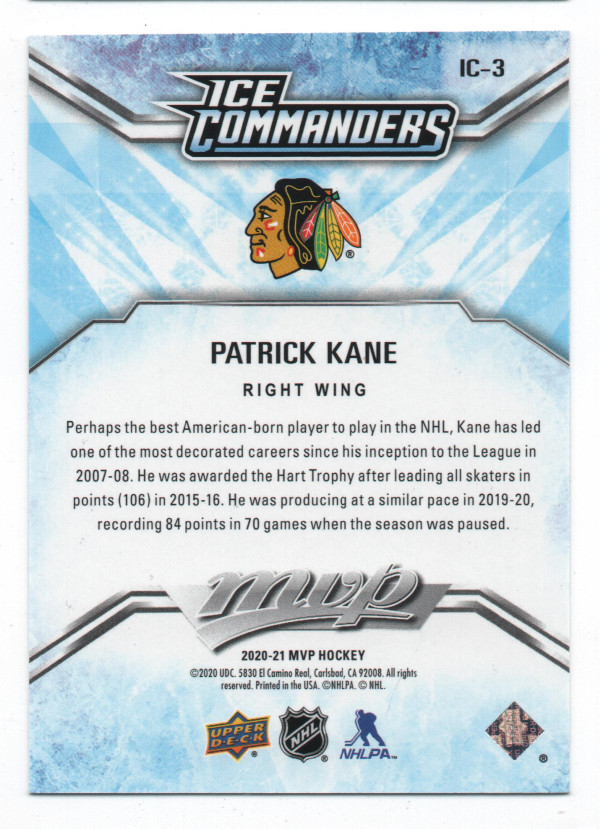 2020-21 Upper Deck MVP ePack Ice Commanders #IC-3 Patrick Kane