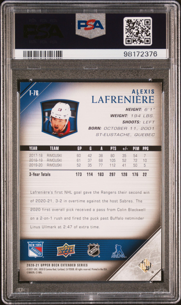 2020 Upper Deck 2005-06 Upper Deck Tribute Alexis Lafreniere 05-06 Upper Deck Tribute