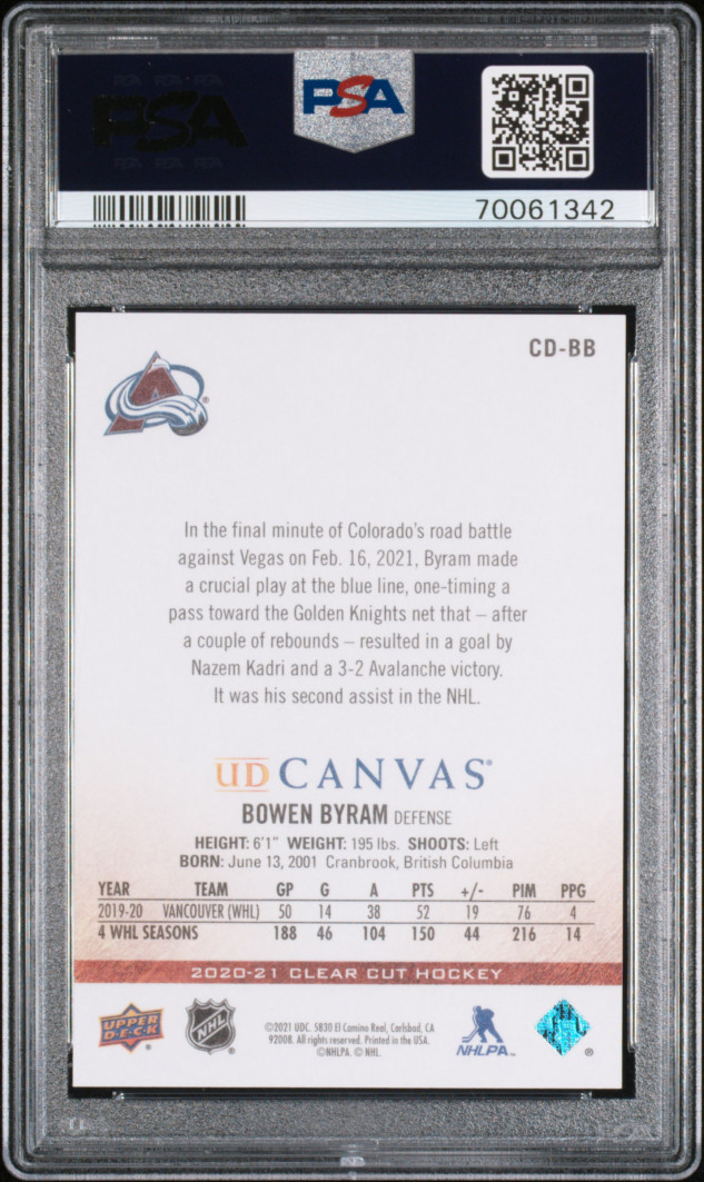 2020 Upper Deck Clear Cut Canvas Debut Bowen Byram Canvas Debut