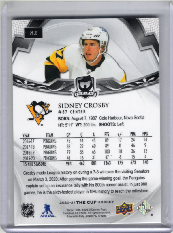 2020 UPPER DECK THE CUP #82 SIDNEY CROSBY /249