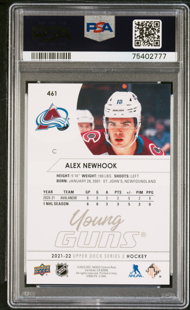 You are purchasing a 2021-2022 Upper Deck Alex Newhook #461 PSA 10. You will receive the exact card in the photographs. Thank you for looking. Listed with Mascot.