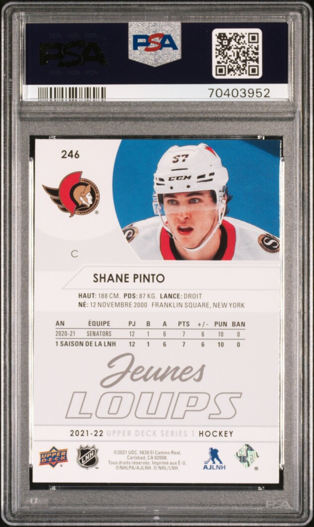 You are purchasing a 2021-2022 Upper Deck Shane Pinto French Young Guns Rookie PSA 10. You will receive the exact item in the photographs. Thank you for looking.
