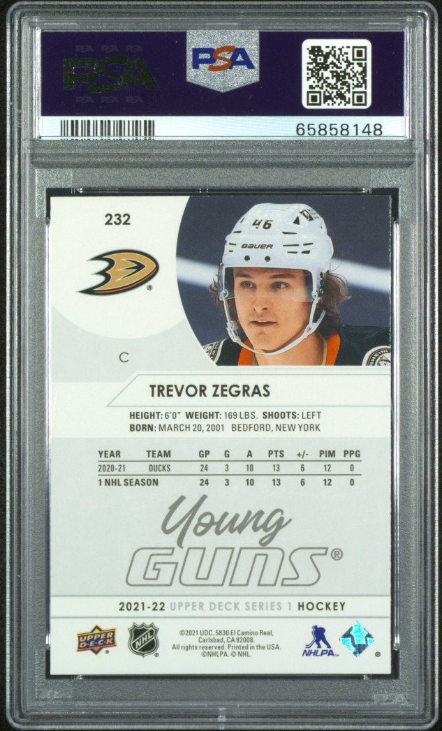 2021-2022 Upper Deck Trevor Zegras Young Guns PSA 10