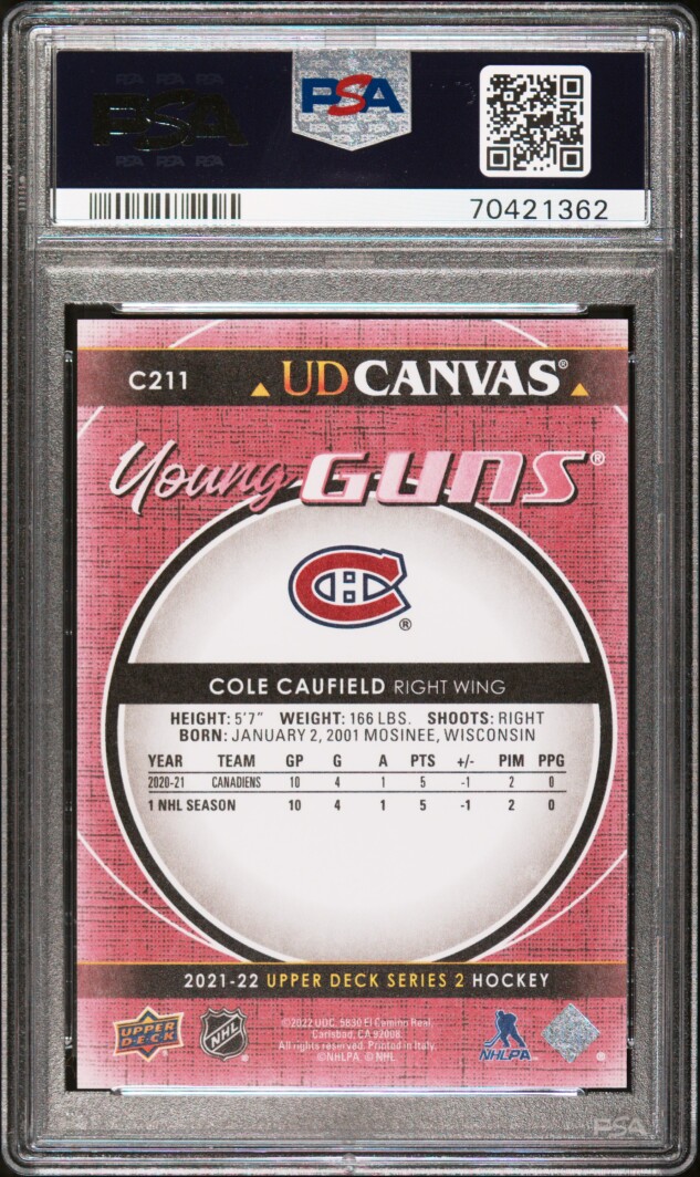 You are purchasing a 2021-2022 Upper Deck UD Canvas Cole Caufield #C211 Young Guns Canvas Rookie PSA 10. You will receive the exact item in the photographs. Thank you for looking.