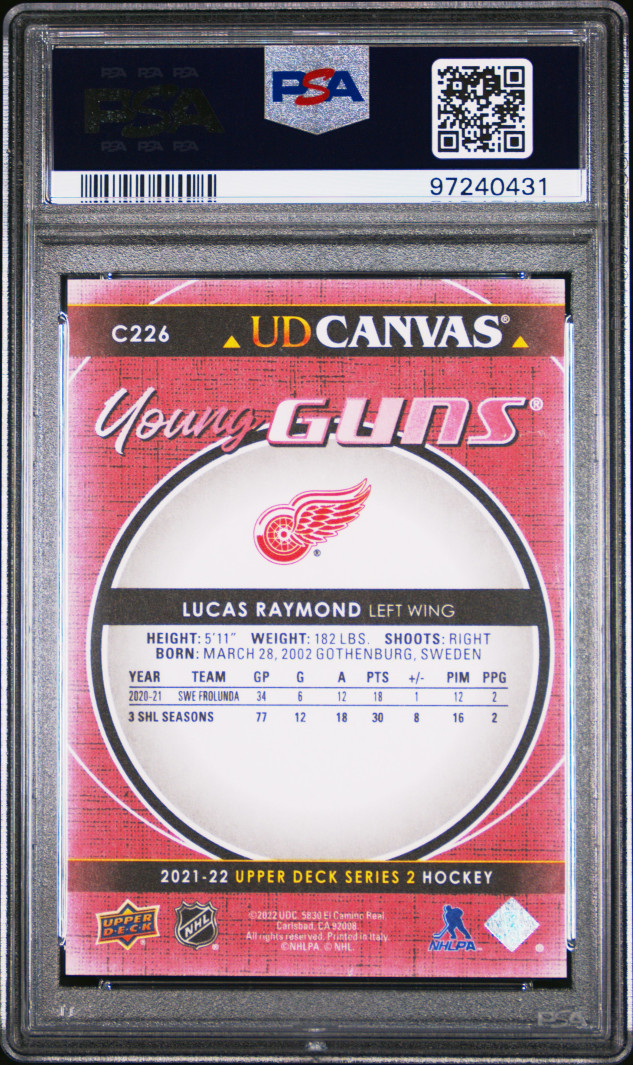 2021-22 Upper Deck Series 2 UD Canvas Young Guns #C226 Lucas Raymond Rc PSA 9