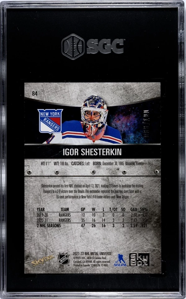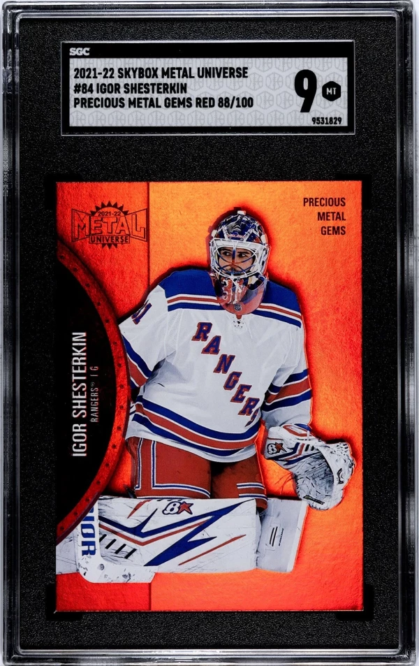 2021-22 Skybox Metal Universe Igor Shesterkin PMG Red /100 SGC 9 Mint