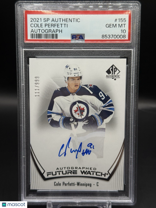 2021-22 SP Authentic Cole Perfetti Future Watch Auto /999 PSA 10