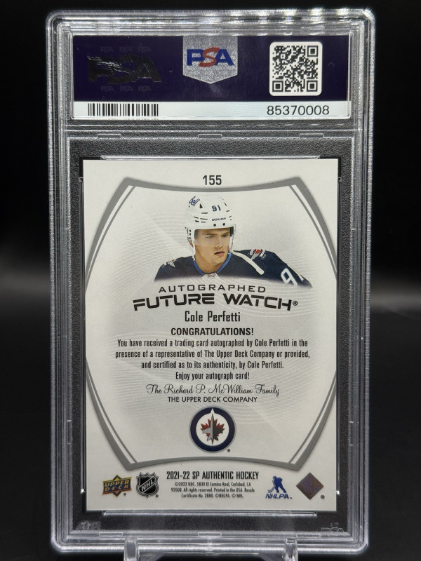 You are purchasing a 2021-22 SP Authentic Cole Perfetti #999 Autograph Short Print PSA 10. You will receive the exact item in the photographs. Thank you for looking.