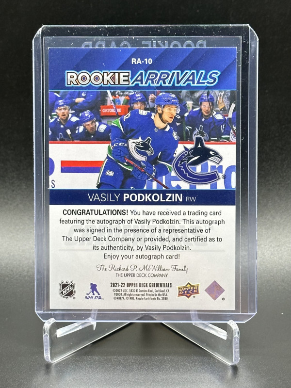 2021-22 UD Credentials Vasily Podkolzin Rookie Arrivals Autograph