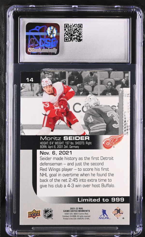 2021-22 UD Game-Dated Moments #14 Moritz Seider /999 Pop 1