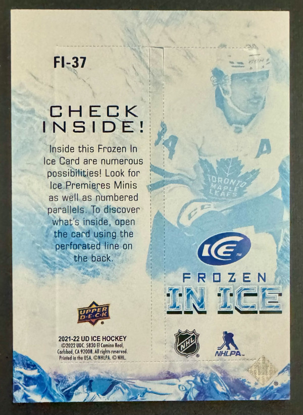 2021-22 UD ICE Auston Matthews Frozen In Ice Rip Card (unripped)