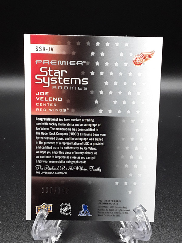 2021-22 UD Premier Star Systems Rookies Auto Patch Joe Veleno SSR-JV /149
