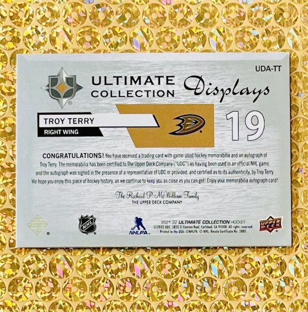 2021-22 UD Ultimate Collection #UDA-TT Troy Terry Game-Used Patch Auto /135