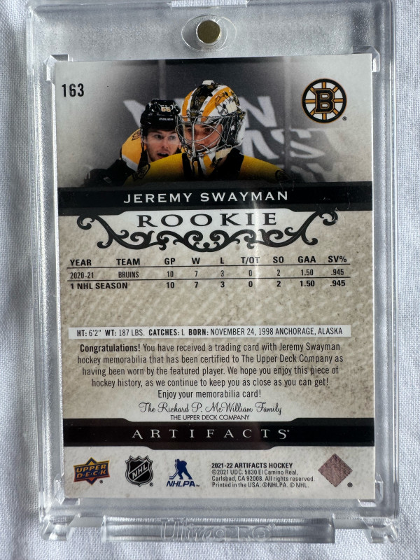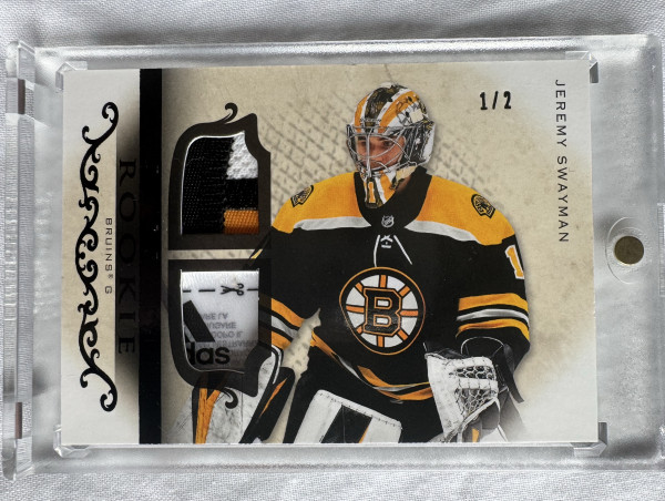 2021-22 Upper Deck Artifacts Jeremy Swayman 1 Of 2 Double Patch Tags Rookie
