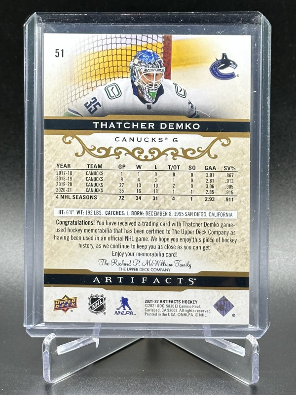 2021-22 Upper Deck Artifacts Thatcher Dennis Gold Dual Jersey (010/249)
