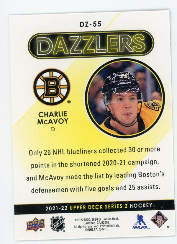 2021-22 Upper Deck Charlie McAvoy Dazzlers Purple