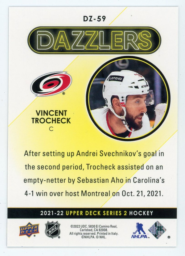2021-22 Upper Deck #DZ-59 Vincent Trocheck Dazzlers Purple