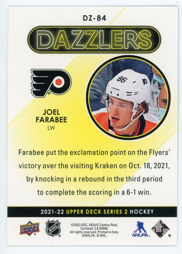 2021-22 Upper Deck #DZ-84 Joel Farabee Dazzlers Purple