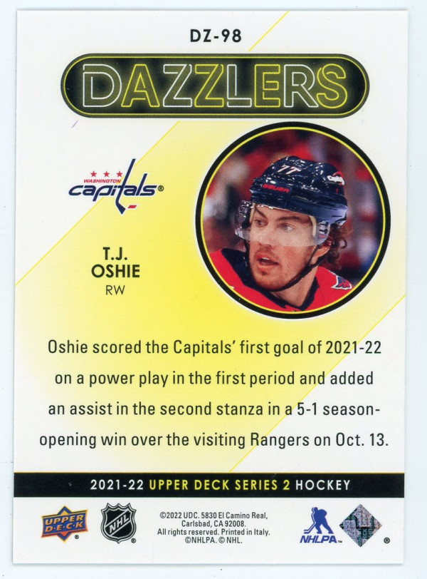 2021-22 Upper Deck #DZ-98 T.J. Oshie Dazzlers Purple