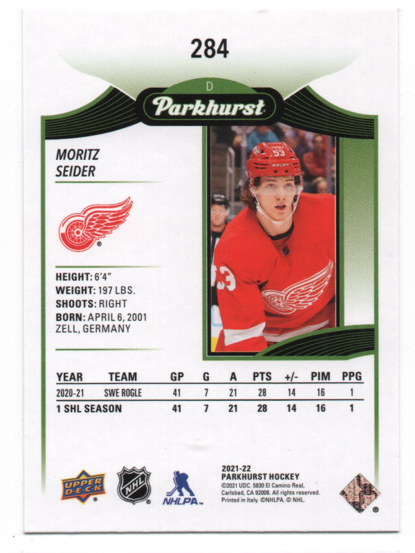 2021-22 Upper Deck Parkhurst ePack Gold Lite FX Parallel #284 Moritz Seider RC