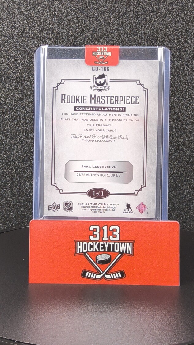 You are purchasing a 2021-22 Upper Deck The Cup Rookie Masterpiece Jake Leschyshyn #GU-166 Cyan Printing Plate. You will receive the exact item in the photographs. Thank you for looking.