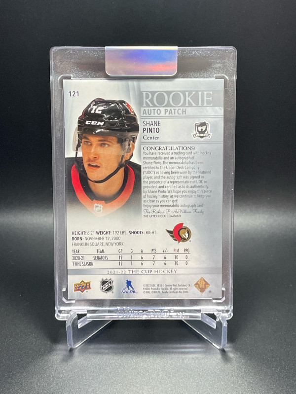 2021-22 Upper Deck The Cup Rookie Patch Auto Shane Pinto #121 127/249