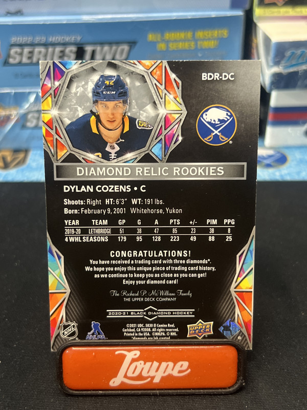 20/21 Black Diamond Dylan Cozens Triple Diamond Rookie /99