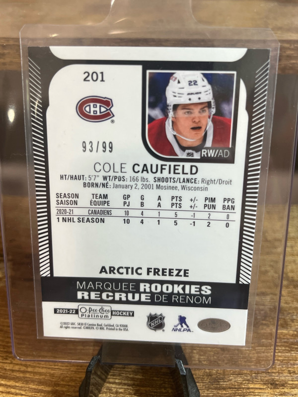 2021 Cole Caufield OPC Arctic Freeze Rookie 93/99