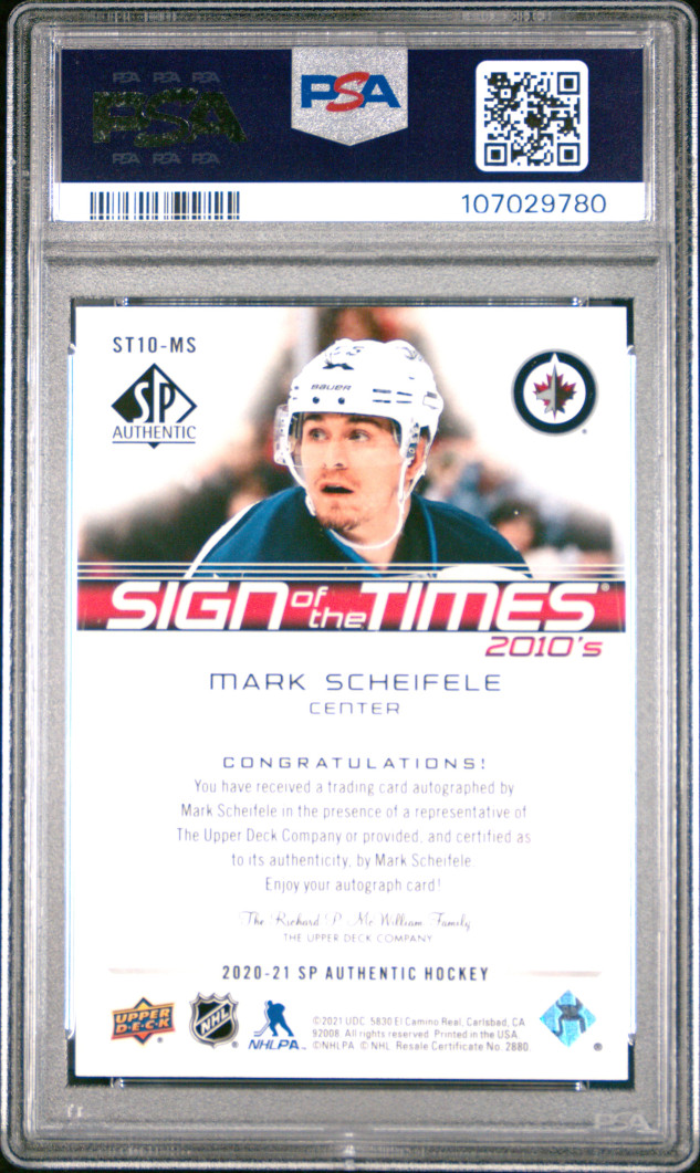 20/21 SP AUTHENTIC SIGN OF THE TIME 2010's #ST10-MS MARK SCHEIFELE PSA 10 - POP 1