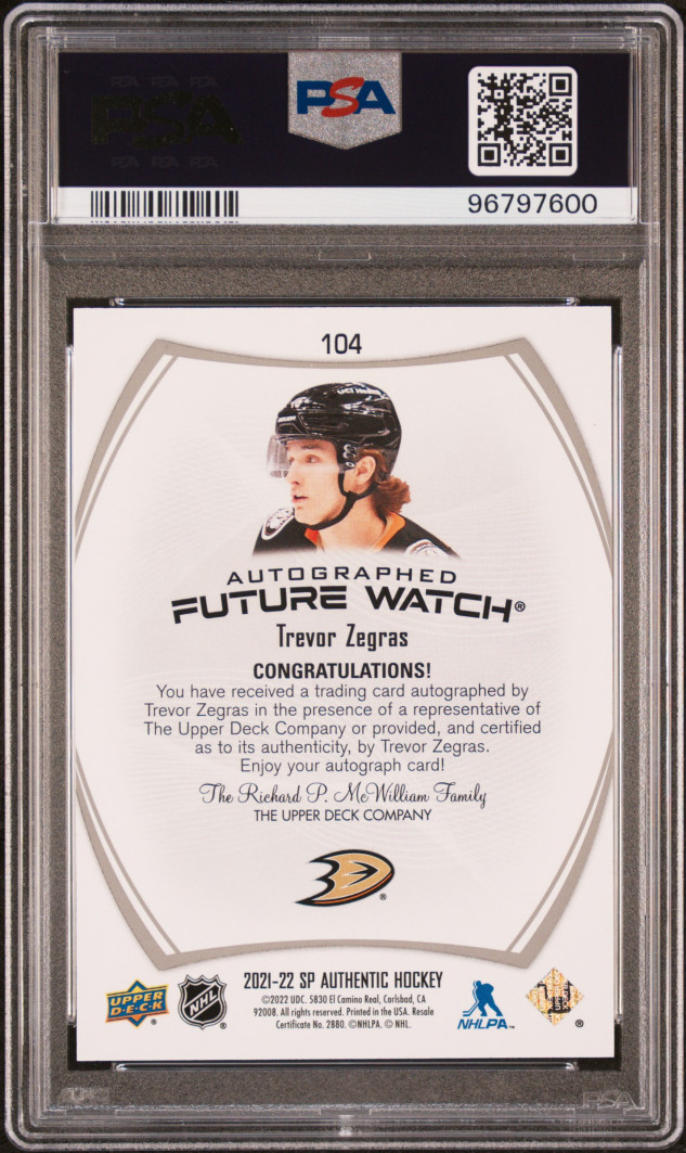 2021 Sp Authentic Trevor Zegras Autograph