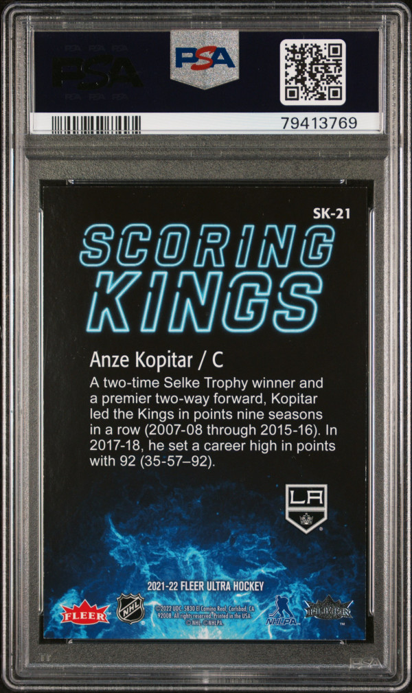 You are purchasing a 2021 Upper Deck Fleer Ultra Scoring Kings Anze Kopitar #SK21 PSA 8. You will receive the exact card in the photographs. Thank you for looking.