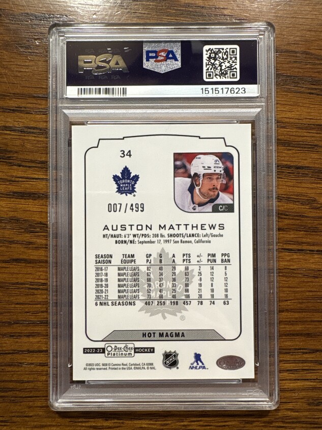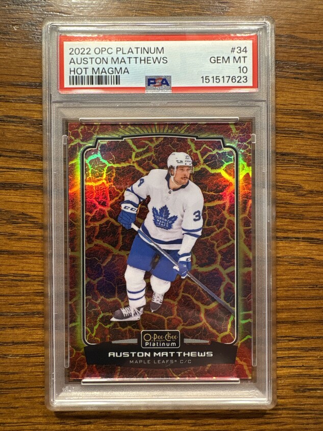 2022-23 O-Pee-Chee Platinum Auston Matthews Hot Magma /499 PSA 10 Maple Leafs