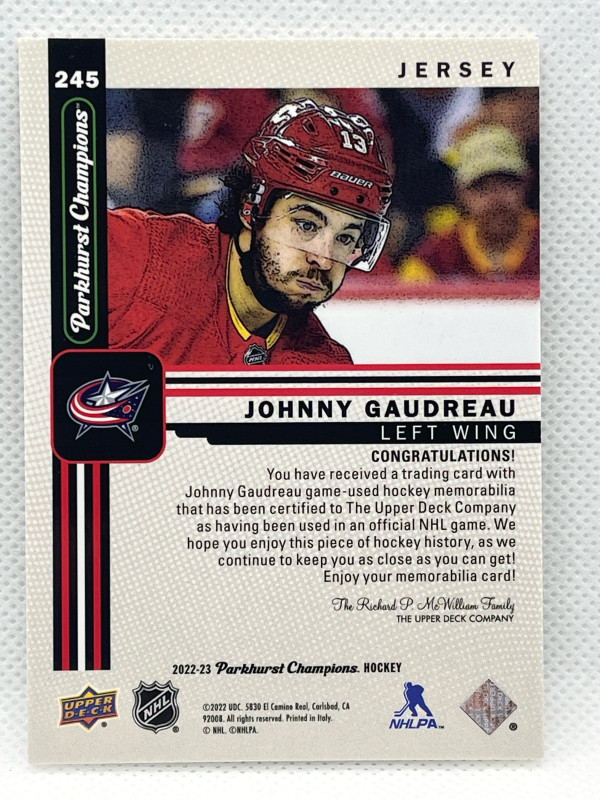 2022-23 Parkhurst Champions JOHNNYGAUDREAU #245 Jersey Memorabilia Card