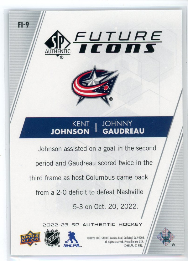2022-23 SP Authentic Kent Johnson Johnny Gaudreau Future Icons /399 #FI-9