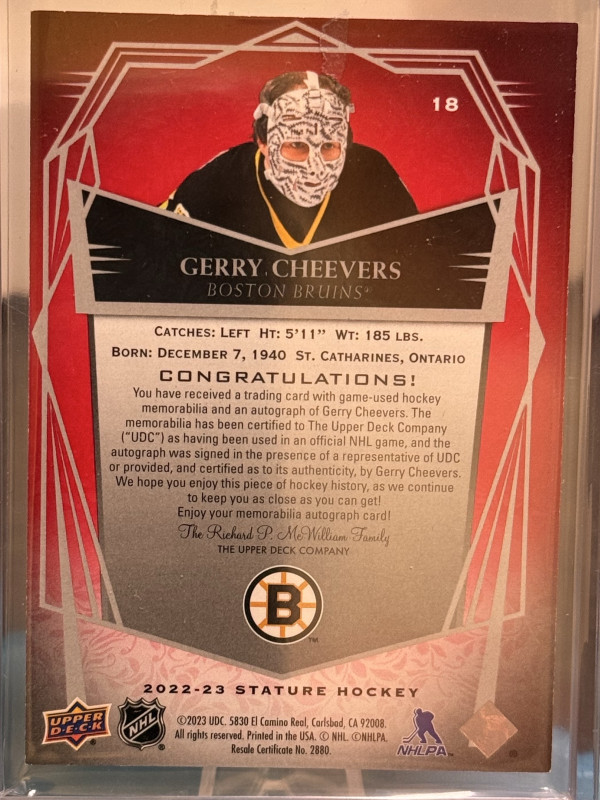 2022-23 Stature Gerry Cheevers Leg Pad Auto /8