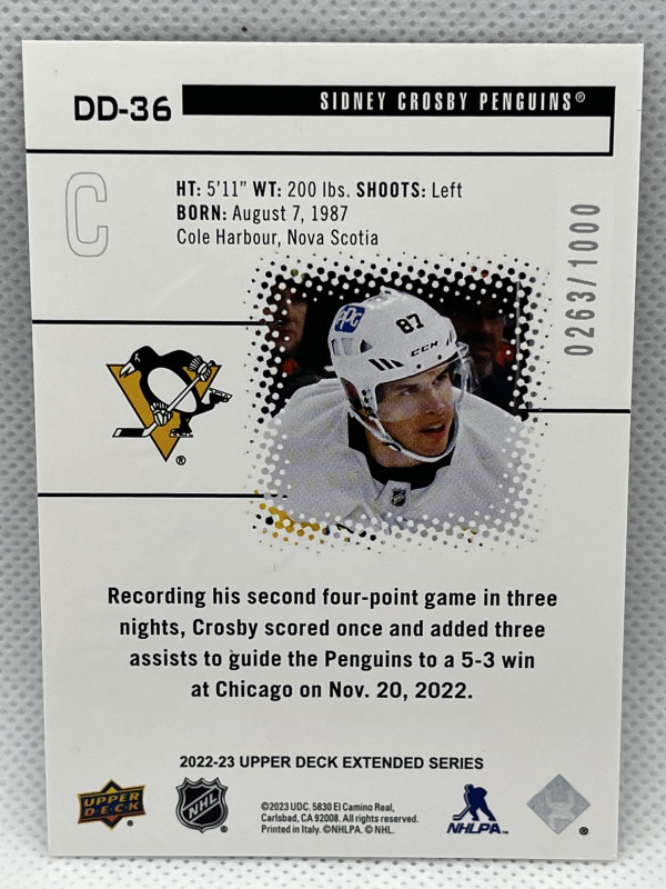 2022-23 UD Extended Series Diamond Dominance #DD-36 SIDNEY CROSBY 0236/1000