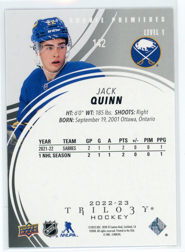 2022-23 UD Trilogy Jack Quinn Rookie /999 Level 1