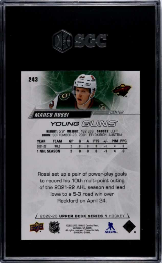 2022-23 Upper Deck Marco Rossi Young Guns #243 SGC 10