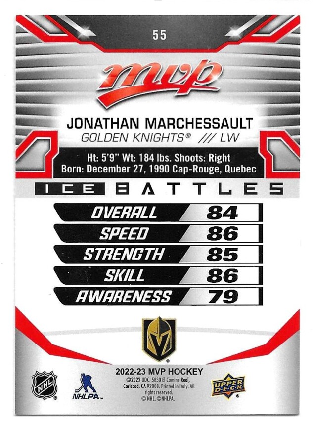 2022-23 UPPER DECK MVP ICE BATTLES #55 JONATHAN MARCHESSAULT