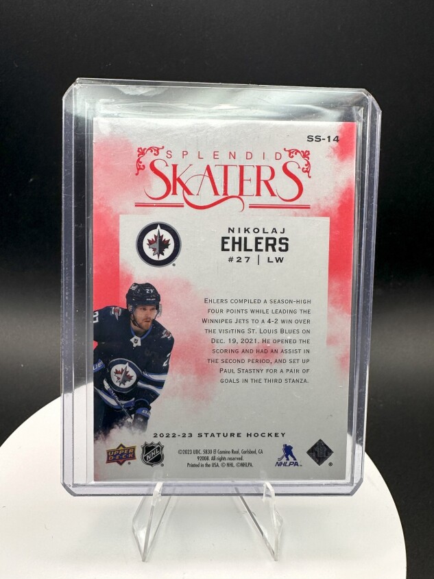 You are purchasing a 2022-23 Upper Deck Stature Nikolaj Ehlers #SS-14 Red SN Upper Deck. You will receive the exact item in the photographs. Thank you for looking.